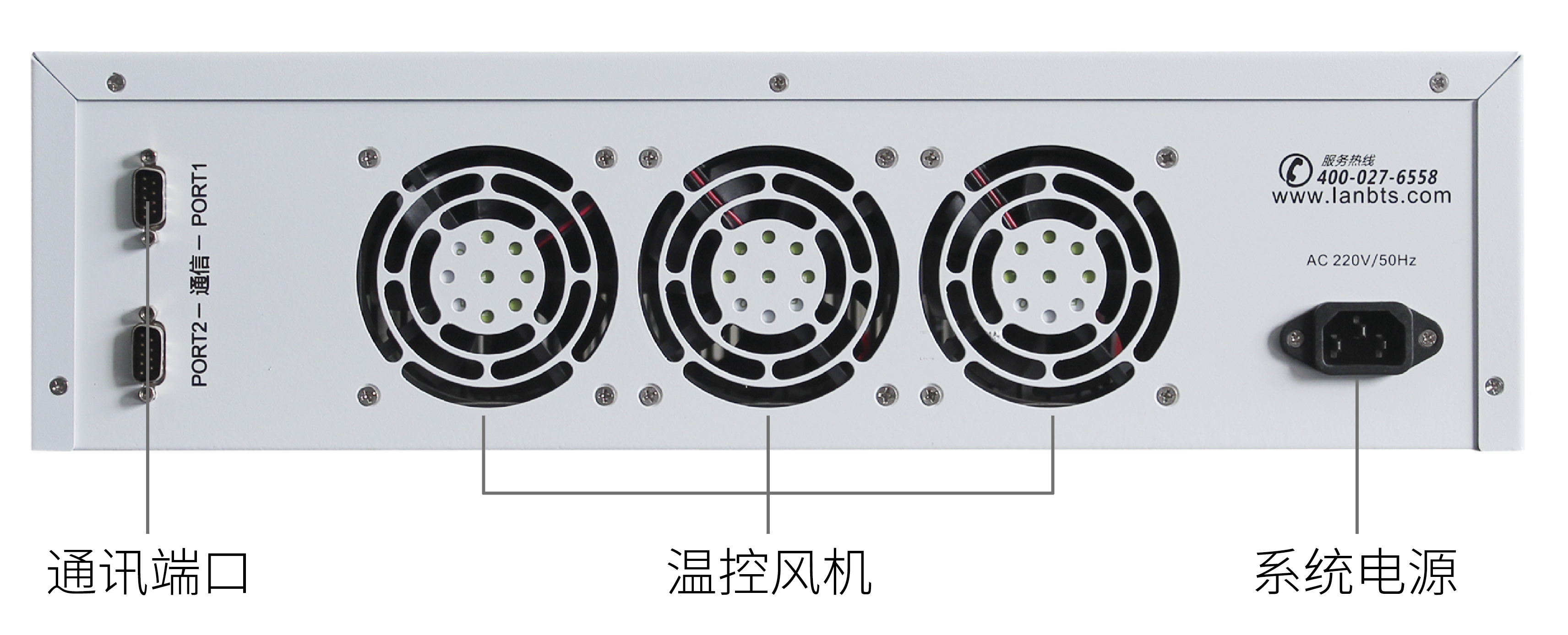 3、電池輸入接口電纜線從設備前面插入,后面出線的方式,方便與高低溫箱或高溫房配合使用;